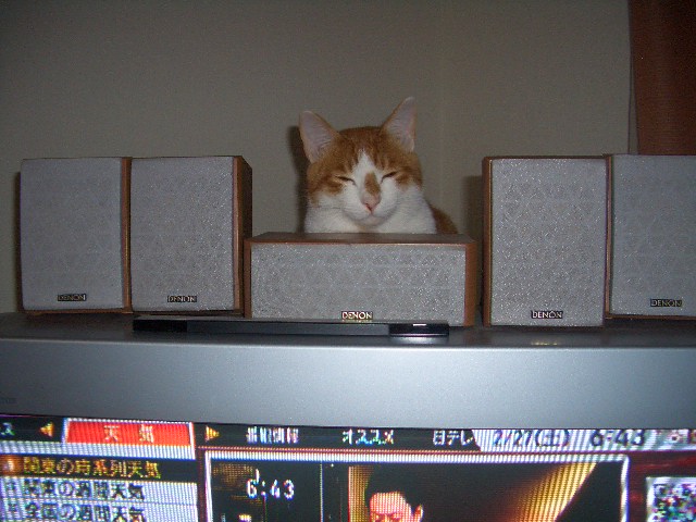 チャオがテレビの上で寝ています