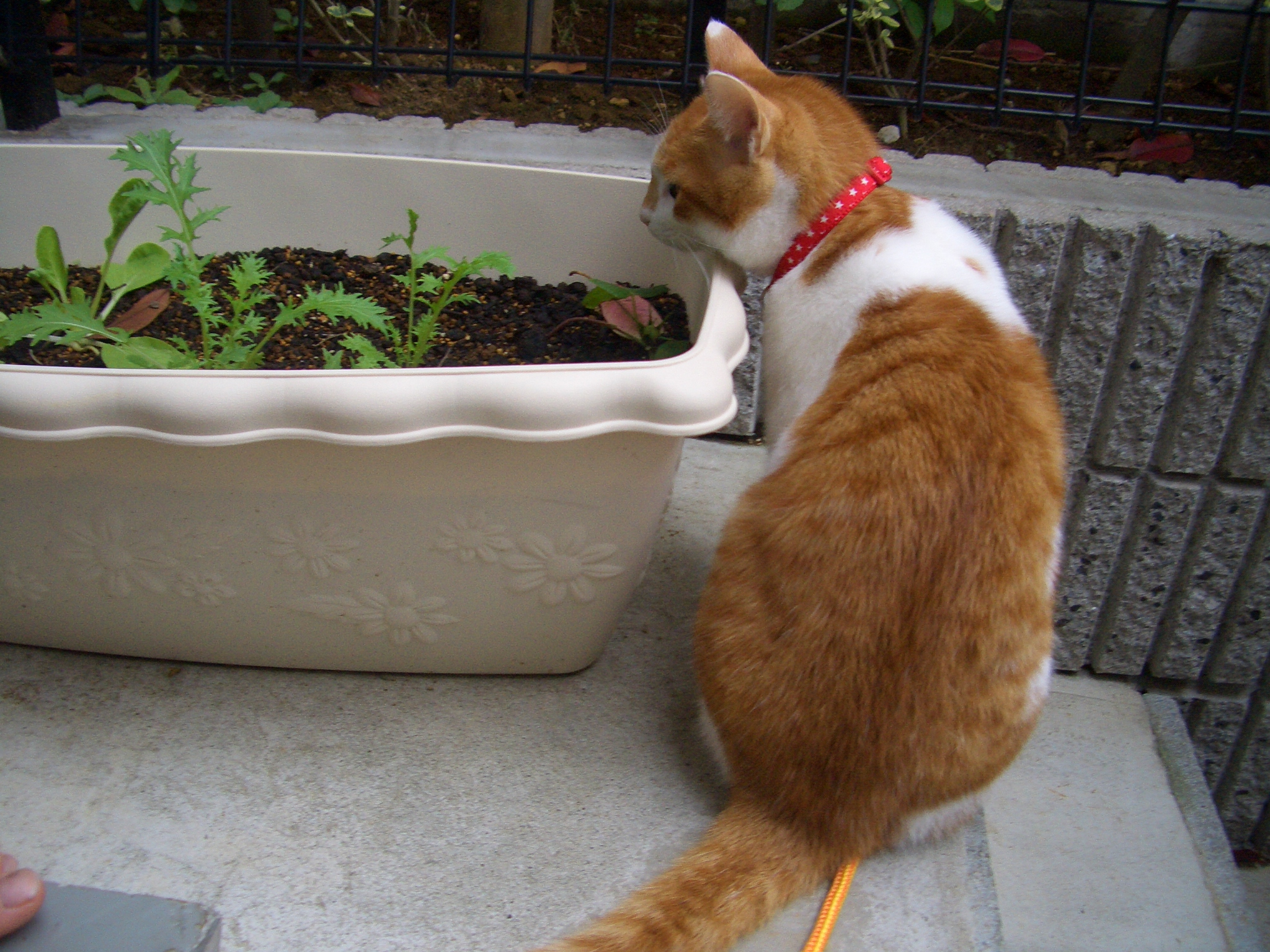 首輪をつけてベランダをお散歩するのも大好き