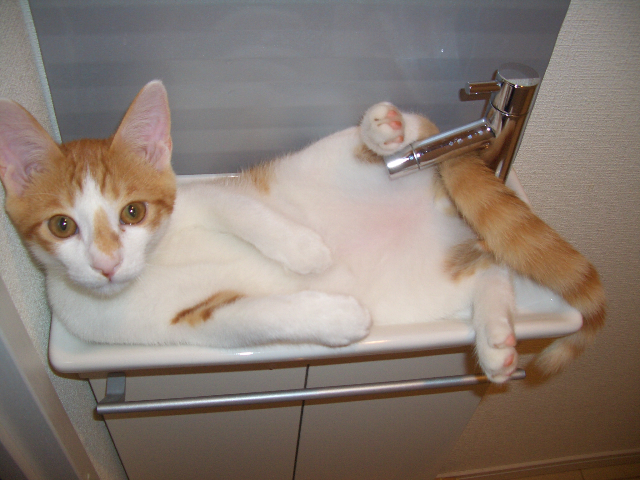 おトイレの手を洗う場所もチャオ君お気に入りのスポットです